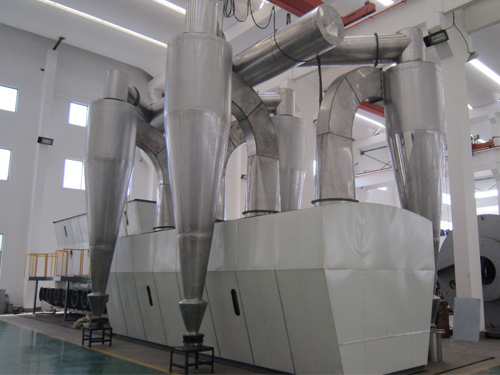 沸腾干燥器,又称流化床,自应用30多年来,有了不断的改进、提高,在制药、化工、食品、粮食加工等行业广泛应用,如:原料药、颗粒成药、冲剂、饲料、塑料树脂等粉状、颗粒状物料的除湿、干燥。物料粒径可以在0.1~6mm范围,最佳为0.5~3mm.。