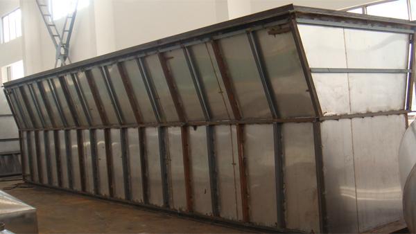 洁净的热风经阀板分配进入床体内,从加料器进入的湿物料被热风形成流化状态,如煮沸的开水在床体内跳跃,故称为沸腾干燥器(沸腾干燥机),由于热风与物料广泛接触,因此在较短的时间内就可以干燥。从床体的一头进入,经几分钟至几十分钟时间的“沸腾”,从床体的另一头自动流出。