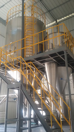 针对中药干燥工艺,本公司经过多年的生产实践优化改进部分生产设备,自主研发了中药配方颗粒专用干燥机。该设备是利用高速离心式雾化器使物料分散成雾状,与热空气充分接触完成瞬间干燥,形成粉或颗粒状成品的干燥装置。