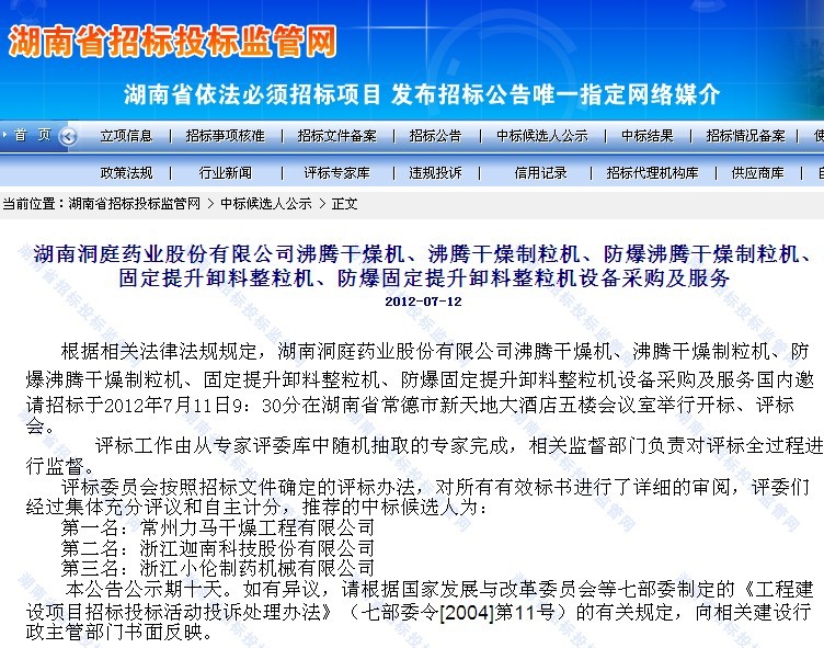《英国威廉希尔唯一官网中标洞庭药业干燥制粒设备》