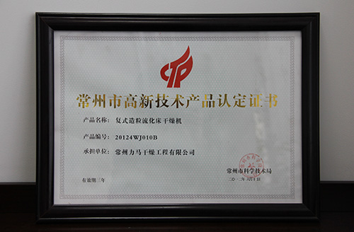 标准证书 | 常州基地 | 复式造粒 | 复式造粒流化床 |