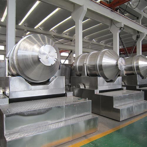 三维运动混合机用于制药、化工、食品、轻工、电子、机械、矿冶、国防工业以及各种科研单位的粉状、颗粒状物料的高均匀度混合。