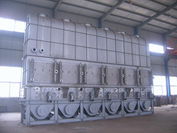 沸腾干燥器,又称流化床,自应用30多年来,有了不断的改进、提高,在制药、化工、食品、粮食加工等行业广泛应用,如:原料药、颗粒成药、冲剂、饲料、塑料树脂等粉状、颗粒状物料的除湿、干燥。物料粒径可以在0.1~6mm范围,最佳为0.5~3mm.。