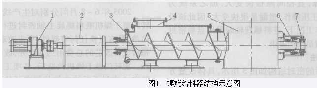 1——减速机; 2——轴承箱; 3——螺旋; 4——进料; 5——旋闪主机; 6——轴端密封; 7——轴承座