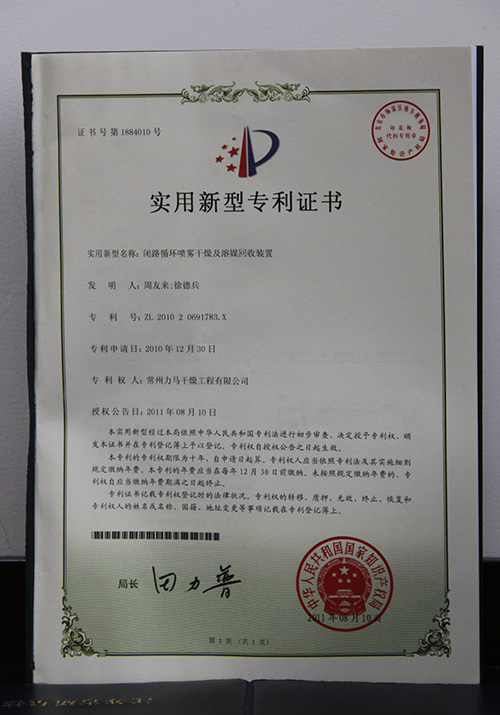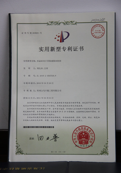 9000证书 | 闭路循环-实用新型 | 闭式循环喷雾 | 多晶硅切片 |