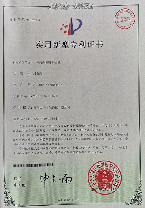 一种气流式喷雾-实用新型 | 一种卧式沸腾干燥机-k | 一种造粒流化床干燥机组 | 一种真空耙式干燥机-k |